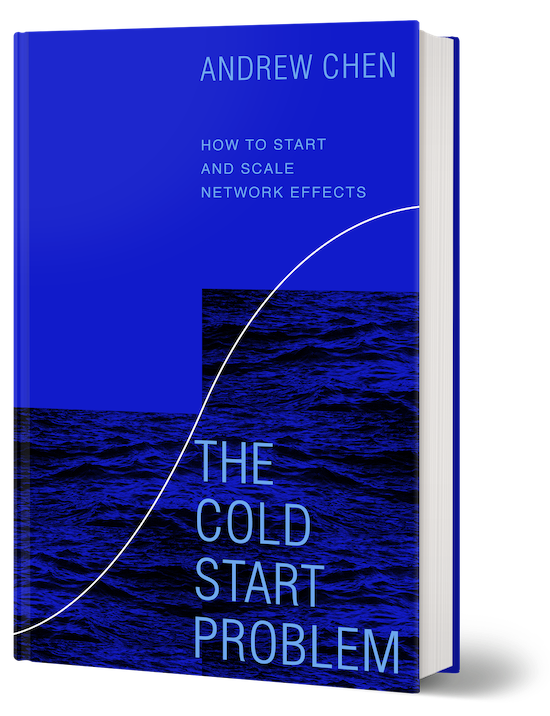 And yet despite understanding the importance of network effects, our collective understanding of the full dynamics of network effects has remained fairly limited. We don't have established best practices for building and scaling networked products nor addressing the inevitable challenges that arise when we attempt to do so. Today Andrew Chen fills this knowledge gap with the launch of his new book, The Cold Start Problem. He's created the definitive guide on network effects targeted at practitioners seeking to build and scale the next generation of networked products.