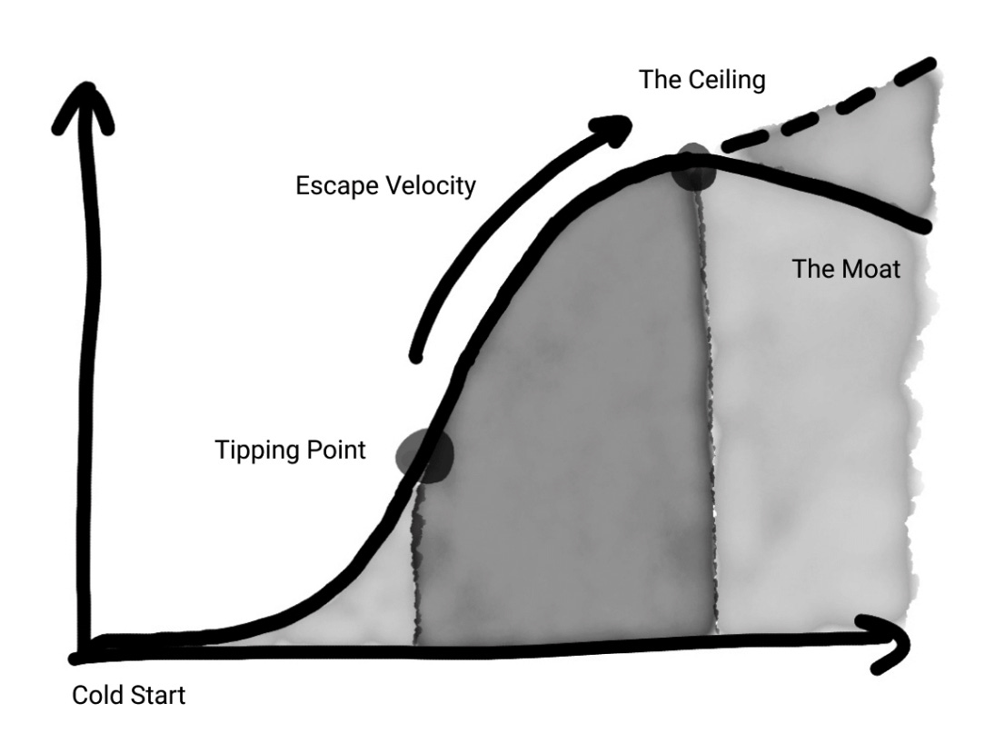 Once your product sees success and starts to scale, you enter escape velocity. At this stage your work transitions to focusing on strengthening network effects and sustaining growth.