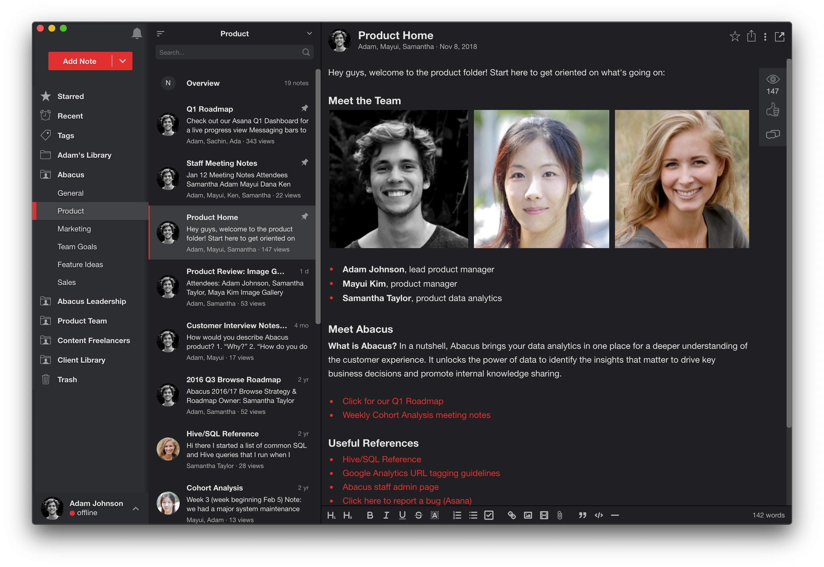 Today I'm excited to announce the launch of offline support in Notejoy, our collaborative notes app for individuals and teams. You can now view, edit, and create notes while offline and have it all seamlessly sync whenever you come back online. More importantly, we've also made the overall Notejoy experience much faster by first loading notes from your local device before also checking Notejoy's servers for any changes. This is an important milestone for us, as offline support has become our #1 requested feature over the past year, so it's great to finally get this in the hands of our customers. For those interested, I wanted to share a behind-the-scenes look at how we thought about the requirements for offline support, the design principles we employed, and the ultimate architecture we settled on to develop a first-class offline experience in Notejoy.