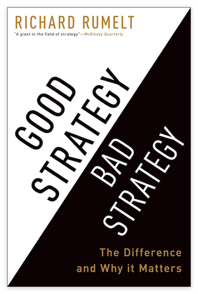 For Rumelt, a vision is not a strategy. While having a big picture overall direction is helpful, when you divorce it from the concrete steps to actually achieve it, you leave the organization rudderless and often unable to realize any part of that vision. Similarly, goals are not strategy. They are nothing more than aspirations if they aren't attached with a concrete achievable plan for accomplishing them.