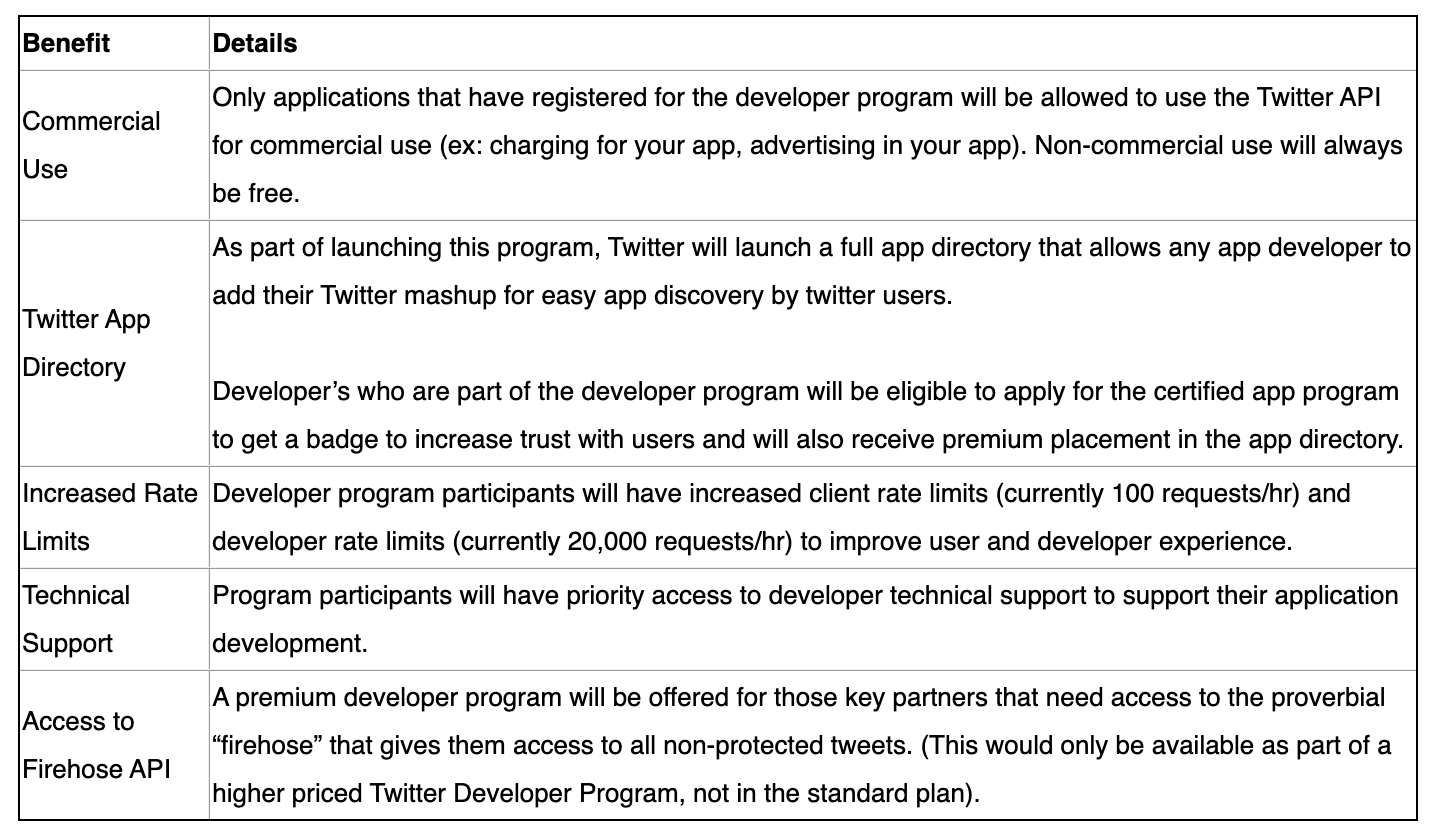 What would a Twitter Developer Program look like? Here are the suggested program benefits: