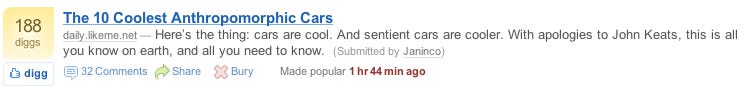Digg uses explicit votes to rank submitted links, YouTube uses video watches to rank uploaded videos, Delicious uses number of bookmarks to rank bookmarks, Rotten Tomatoes uses user movie reviews, and so on.