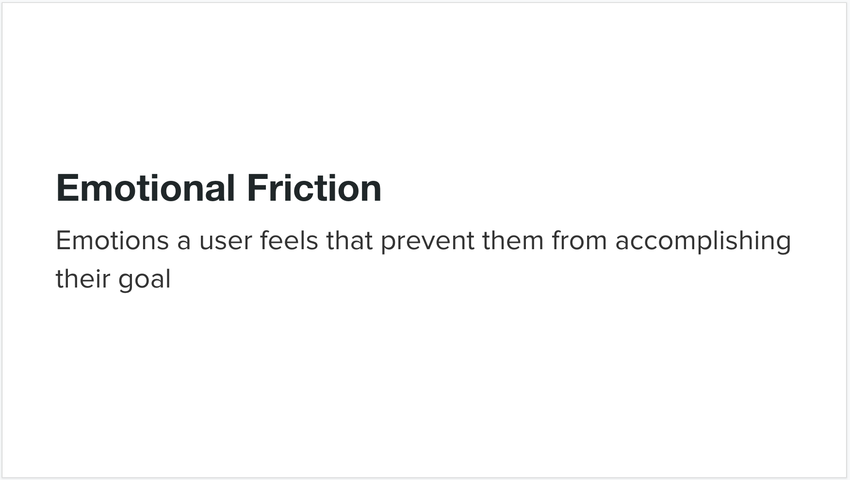 The final category of user friction is emotional friction, which refers to emotions your users feel that prevent them from accomplishing their goal. These are often the most difficult to perceive and equally the most difficult to address. Let's take a look at a few of these in practice and how product designers ultimately solved them.