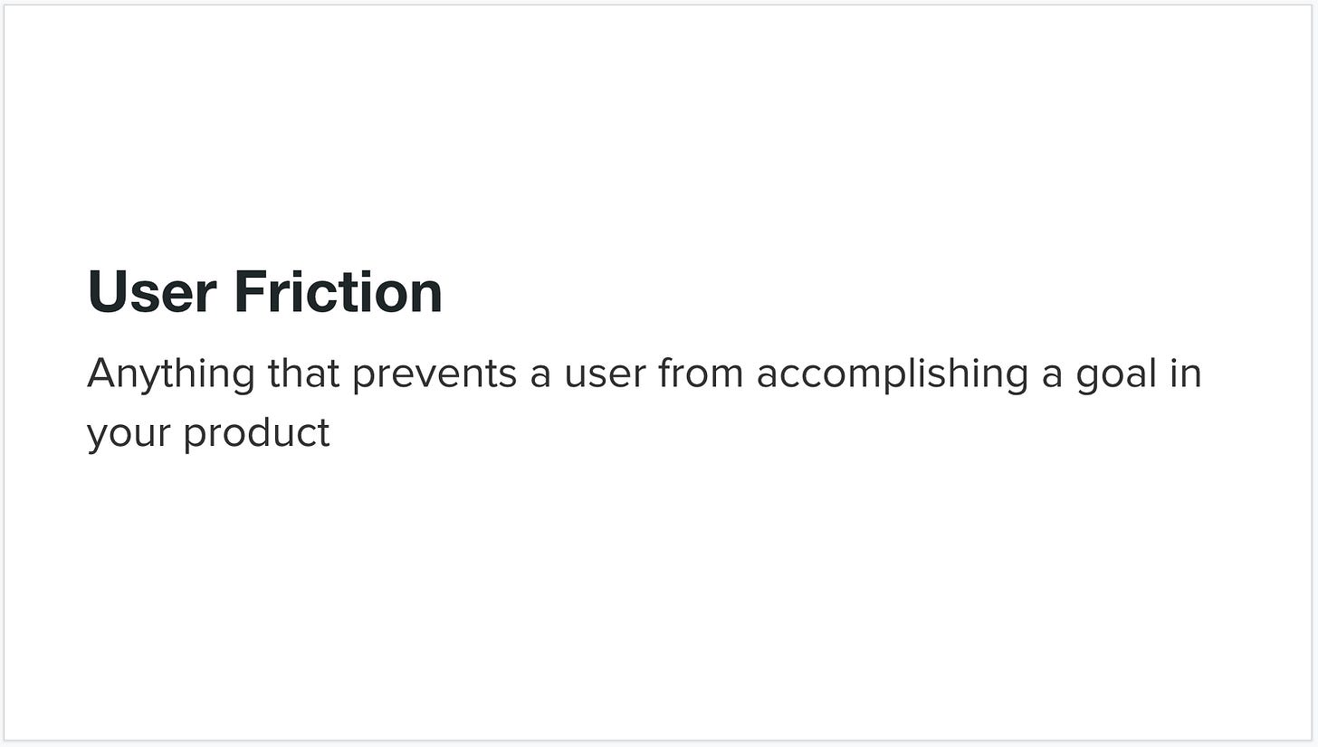 User friction is really anything that prevents a user from accomplishing a goal in your product. I categorize user friction into a hierarchy of three levels: interaction friction, cognitive friction, and emotional friction. Interaction friction is what I hear talked about most often amongst product designers, but the higher levels of cognitive friction and emotional friction are equally important to solve for to build a great user experience.
