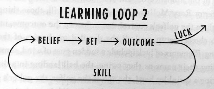 Annie goes on to introduce us to the ideal learning loop. Having experiences and becoming an expert are two different things and in Annie's view, the only way to become an expert is by fine-tuning your learning loop. Annie encourages us to think about every decision we make as an explicit bet we are making based on our beliefs and then to post-mortem those decisions after the outcome is known to determine what part was luck and what part should be captured as new skills. By doing this explicitly with every decision, we maximize our learning and increase the chances of making high-quality decisions. It's critical to internalize that our beliefs are ultimately what drive what bets we make. So that way you realize that part of the skill in decision making comes from learning to be a better belief calibrator, using experience and information to more objectively update our beliefs to more accurately represent the world. To fight self-serving bias and motivated reasoning, we need to substitute the routine of truth-seeking into our learning loop instead of the more typical instinct to seek credit and avoid blame. Annie suggests decision groups as one critical tactic for ensuring you adhere to this process. Decision groups can help make the beliefs that are driving your decision more explicit to all members of the group. They can also help when post-morteming a decision, as long as you encourage diverse opinions to be shared and avoid groupthink.